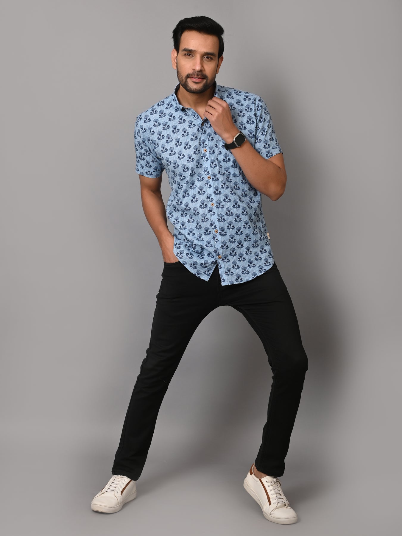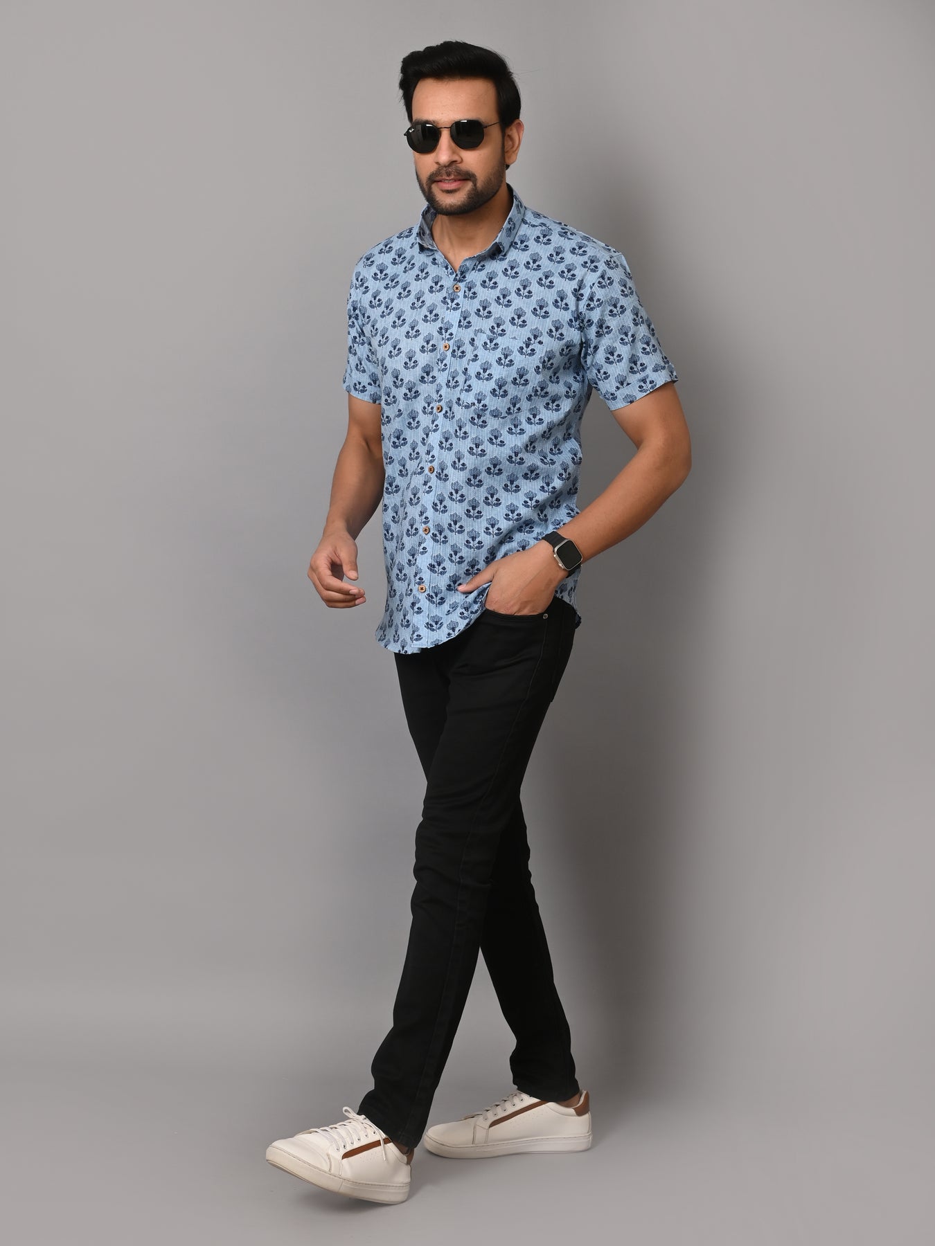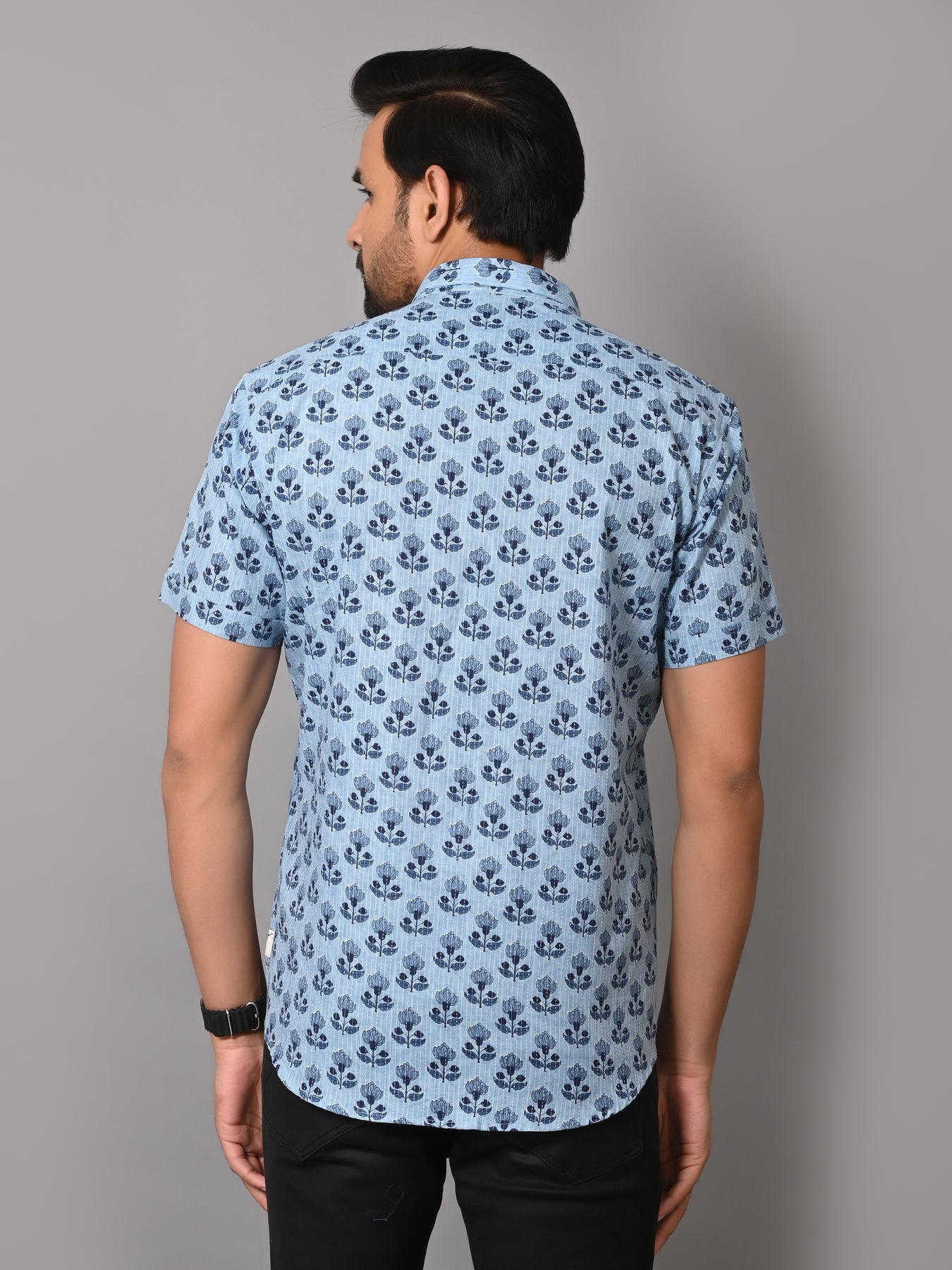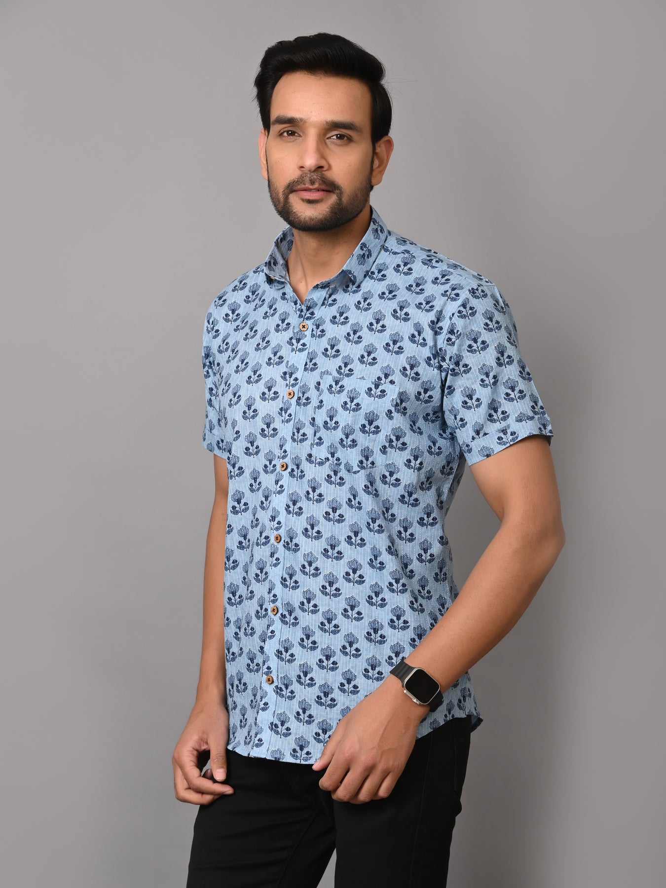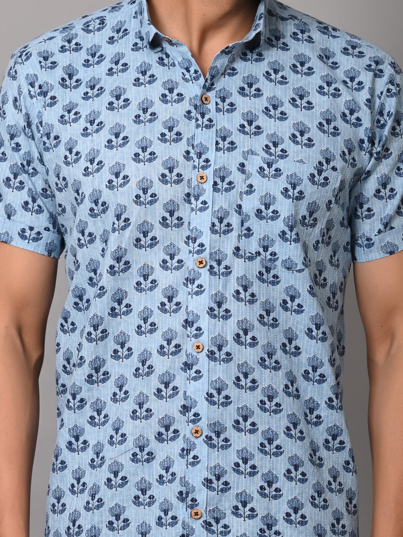 Floral Mark On Sky Base Premium Katha Shirt