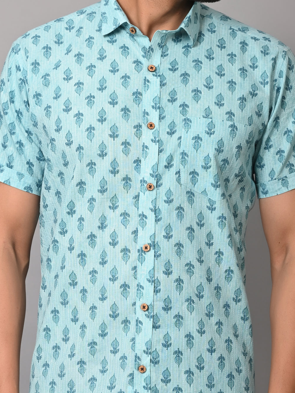 VJR Katha Floral Sky Blue Premium Half Sleeves
