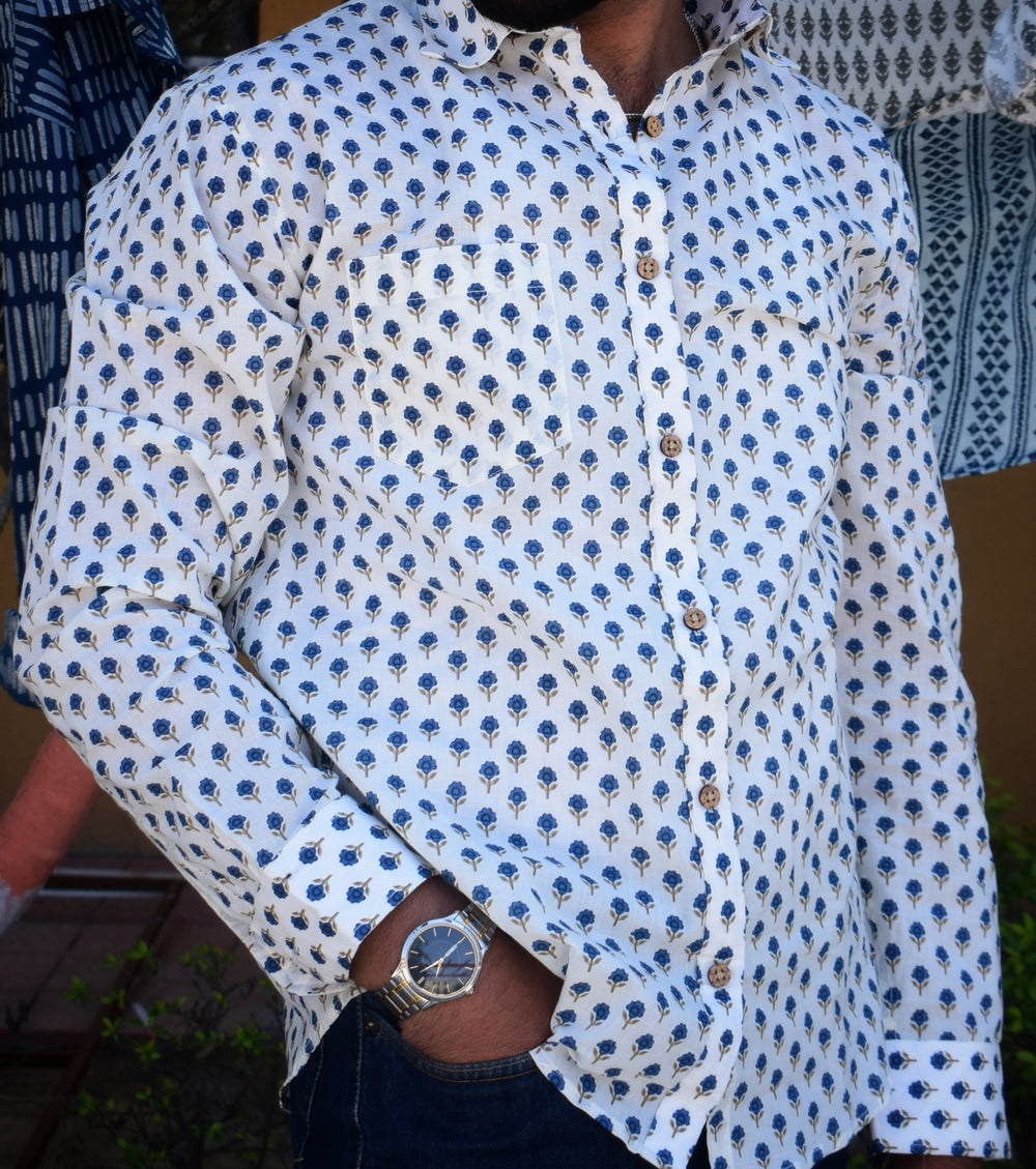 VJR White Floral Full Sleeves Shirt