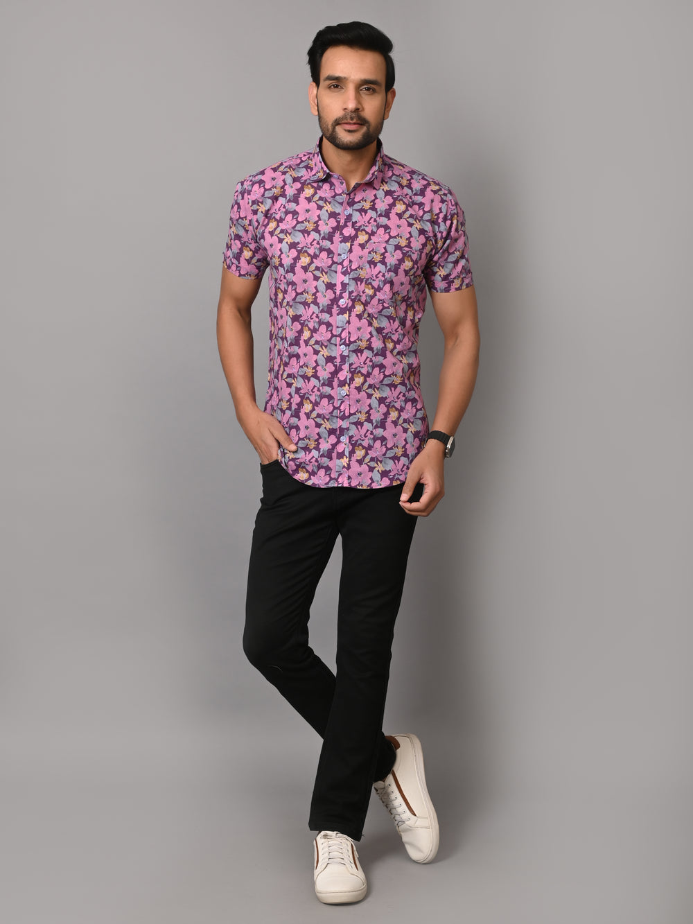 VJR Premium Pink Floral on Lavender Base Half Sleeves